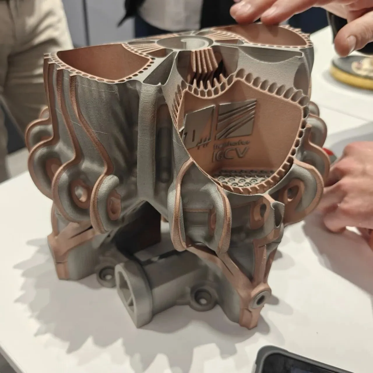 01-23 18:48德国Fraunhofer IGCV最近展示了令人侧目的新零件:铜和钢在同一个打印件里无缝融合,高温区用铜导热,承力区用钢撑结构。用Schaeffler Aerosint的多材料铺粉系统实现的。之前我们也分享过这个设备的原理。这个多材料打印案例正在改变热管理设计的底层逻辑。为什么是铜钢组合?散热领域一直有个两难,铜导热好但软,钢强度高但导热弱。传统方案要么妥协材料,要么靠焊接拼装。焊缝是隐患,钎焊工艺成品率不高,扩散焊设备门槛又高。多材料打印直接跳过了这个困境。同一个零件里,热流路径用铜,结构承载用钢,两种材料在微观尺度上形成梯度过渡,避免了界面应力集中。Fraunhofer通过调整扫描顺序和搭接区参数,实现了致密的双金属界面。这在几年前被认为几乎不可能,因为铜和钢的热膨胀系数和导热率差异太大。AM易道看完这个案例,还有几个核心问题我们还没有找到答案,期待读者评论区分享。界面强度怎么验证? 电化学腐蚀风险? 铜钢接触在潮湿环境下会形成电偶,加速腐蚀。这对长期可靠性是个隐患,尤其在液冷场景。温度循环扛得住吗?两种材料的界面会不会开裂?说回开头那个铜钢复合零件。它的设计者不是工程师,而是LEAP71的Noyron,一个大型计算工程模型。LEAP71的思路是让算法从零开始生成设计。输入性能参数和制造约束,输出可直接打印的几何文件。不画草图,不建模,不做拓扑优化的后处理。拓扑优化是从已有几何出发做减法,Noyron是从空白画布开始,用物理逻辑和工程知识直接生长出结构。LEAP71的创始人Josefine Lissner说:用神经网络训练再多3D模型也没用,因为网格本身不理解功能。几何必须服从物理定律,这不是统计学习能覆盖的。他们已经用这套方法设计并点火测试了多款火箭发动机,包括传统钟形喷管和气尖发动机。LEAP71指向的未来是,设计的产出不再是一个CAD文件,而是一段可复用、可迭代的代码。每生成一个零件,都在反哺系统的知识库。设计变成了软件工程,知识产权从图纸变成了算法。对散热设计来说,意味着你不再需要一个个画翅片、调流道,而是告诉系统:热源功率多少、体积约束多少、流阻预算多少、用什么材料组合,剩下的交给计算。当然,这方面还很早期。Noyron目前聚焦航天推进系统,热交换器是他们明确提到的下一个方向。多材料打印提供了制造可能性,计算工程提供了设计方法论,两者正在交汇。