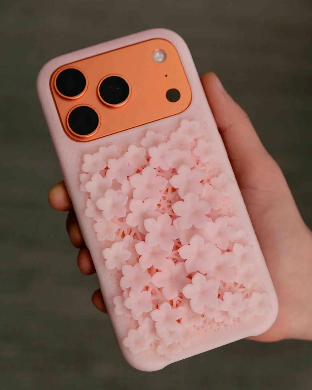Susan Fang x 苹果合作推出iPhone 17 Pro系列3D打印手机壳,以柔性TPU捕捉立体桃花纹理