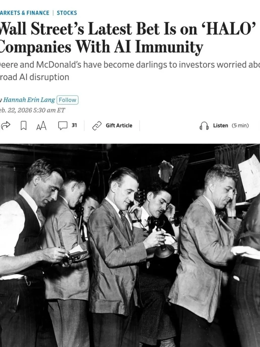 前者依然有极大商业价值,只是按照最近投资圈被AI搞得逐步跟风化,如果越来越多投资人买账HALO逻辑,显然后者底气更硬。