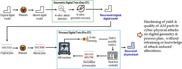 该团队开发了一个基于数字孪生的创新防御框架,旨在让增材制造运营在面对网络攻击时能够保持持续生产,而不是被迫中断。