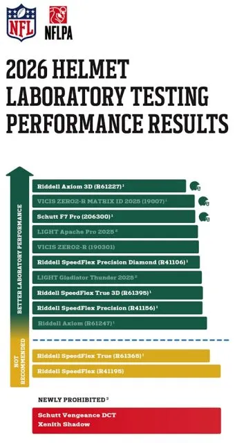 2026年NFL头盔实验室测试结果已正式公布,采用增材制造技术的产品再次占据了领先地位。