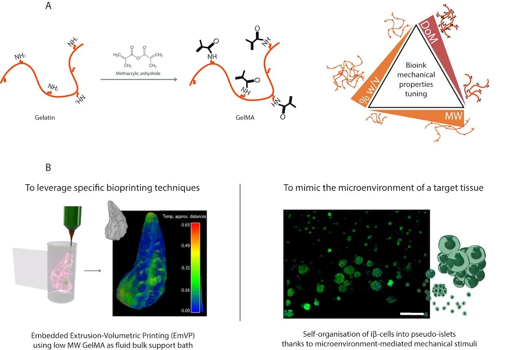 罗赛洛在其中开发了一种机械性能可调的水凝胶,用于创建包含封装胰岛的内分泌胰腺微环境。
