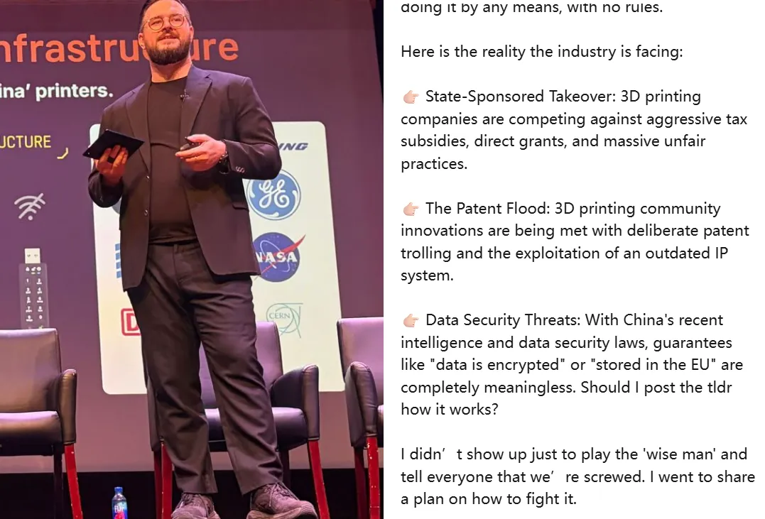 但无论如何,Prusa已经成为西方3D打印圈里最高调的抗中声音。