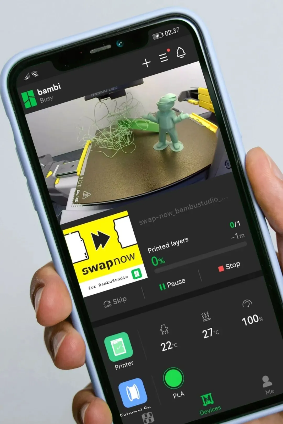 以前你在外面看着手机APP,打印完了也只能干瞪眼。现在配合一个叫swapnow的G-code文件,你可以远程触发换板,让机器继续工作。