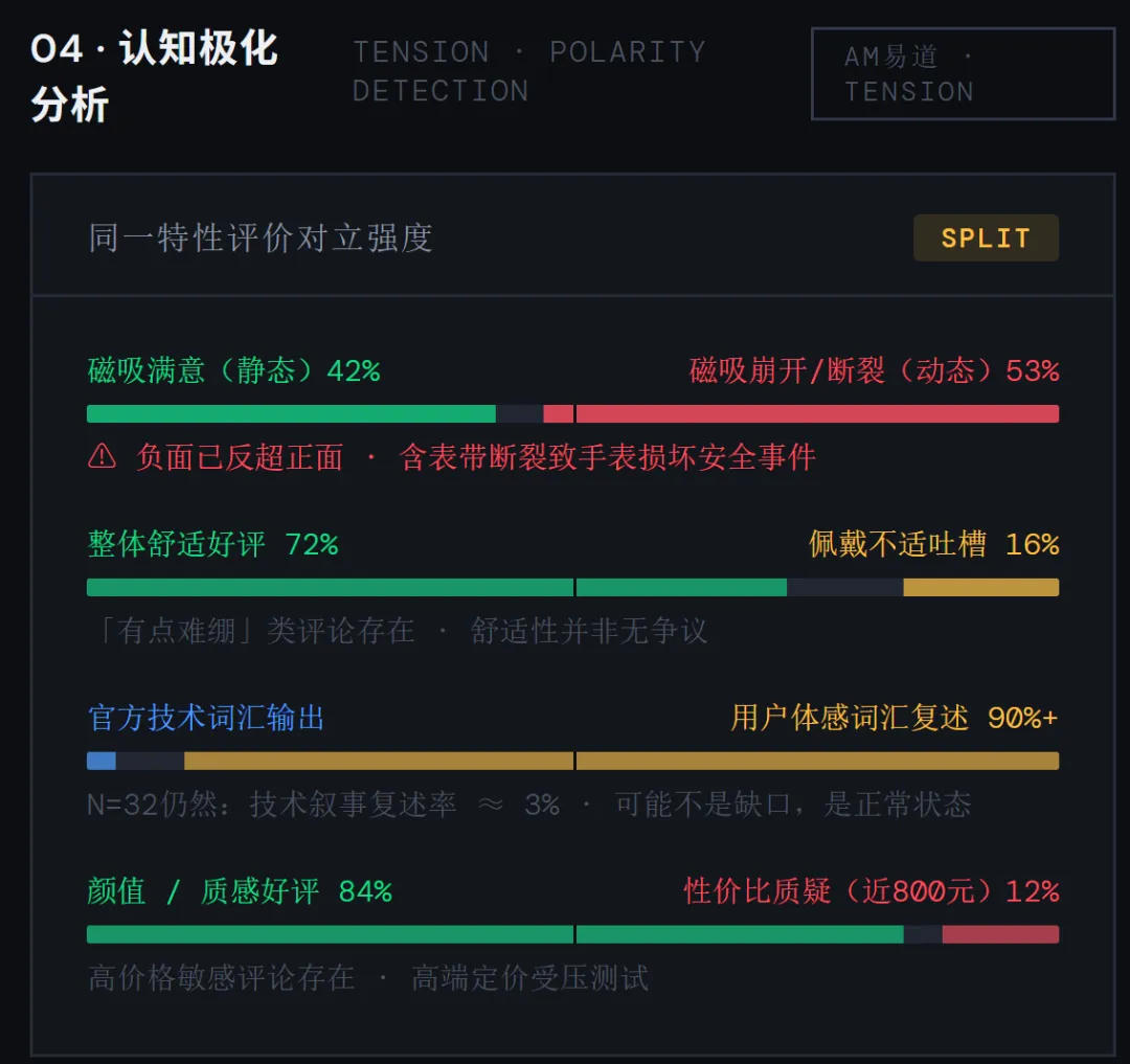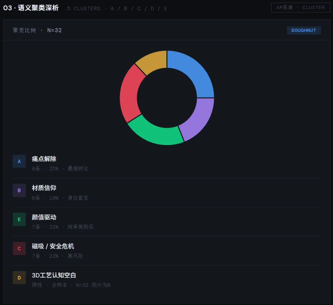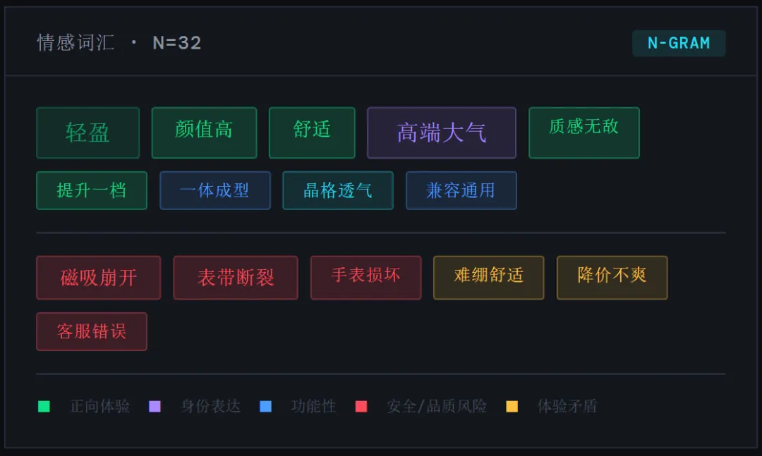 颜值驱动类评论占22%,没有任何用户自发关心工艺。
