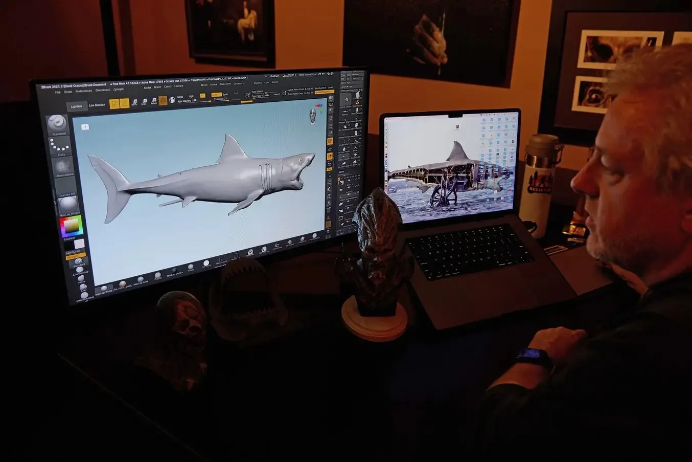 KNB EFX团队首先对原版“布鲁斯”道具进行了3D扫描,获取了精确的数字模型。